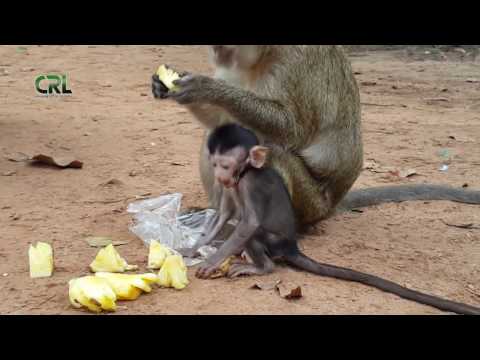 monkey protects baby, monkey eating corn, monkey eat corn, cute baby mon...